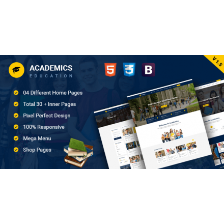 Mẫu học thuật đi kèm với các tính năng và trang cần thiết cho Trường học, Cao đẳng & Đại học.
