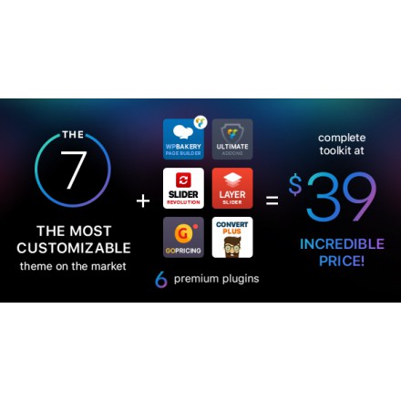 The7 mang lại nhiều giá trị hơn cho đồng tiền. Nó bao gồm 6 plugin cao cấp: Slider Revolution, The7 Elements, Go - Bảng giá, WPBakery Page Builder, Ultimate Addons và Convert Plus miễn phí!